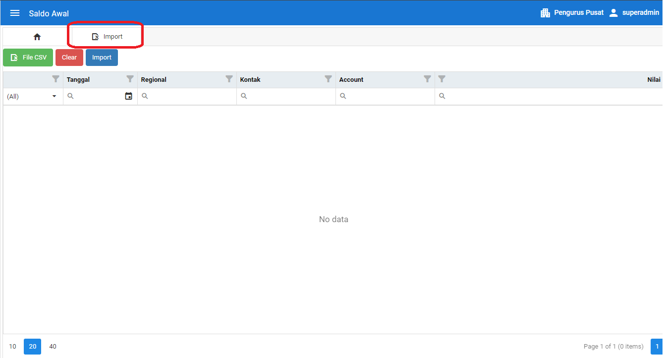 - Klik tombol File CSV, kemudian arahkan pada file CSV yang sudah kita siapkan, kemudian klik tombol Import.