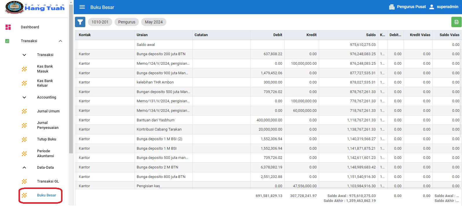 Data yang menampilkan Saldo Awal, Mutasi detail, dan Saldo Akhir per akun.